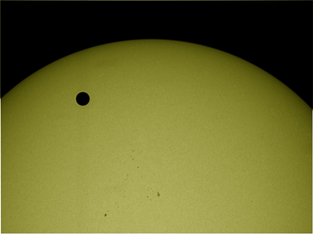 The image below illustrates the Venus egress "contact point" taken by an AAG member in 2004 from Florida. By precisely timing the event from widely separated locations, early astronomers thought they could compute the distance from the Earth to the Sun using trigonometry. However, the